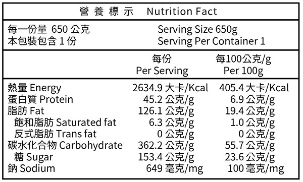 過敏原:本產品包含乳製品、麩質、雞蛋,不適合其過敏體質者食用。