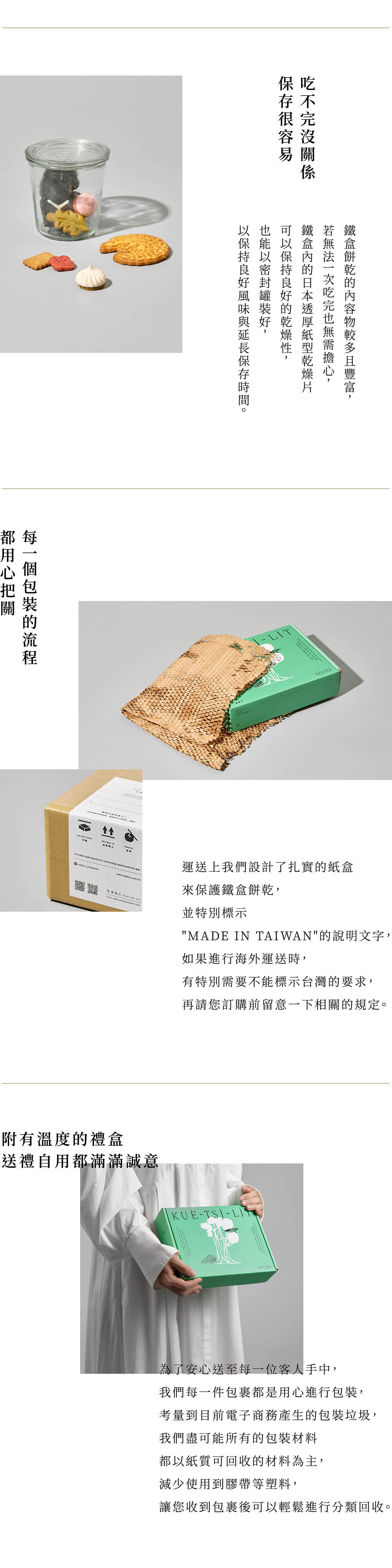 喜愛的台灣山林特有種動物,成為一片片慢工製作的餅乾,帶著天然食材的香氣與酥脆的口感,微甜不膩的口味是親子也可以一起品嚐的好味道。受邀國慶酒宴時,外賓對台灣特有種動物的造型與在地食材口味非常喜愛,作為贈禮也非常體面的。透過我們小心翼翼的完善包裝,目前已配送至日本、香港、澳門、新加坡、馬來西亞等國家,廣受許多外國朋友的喜愛。