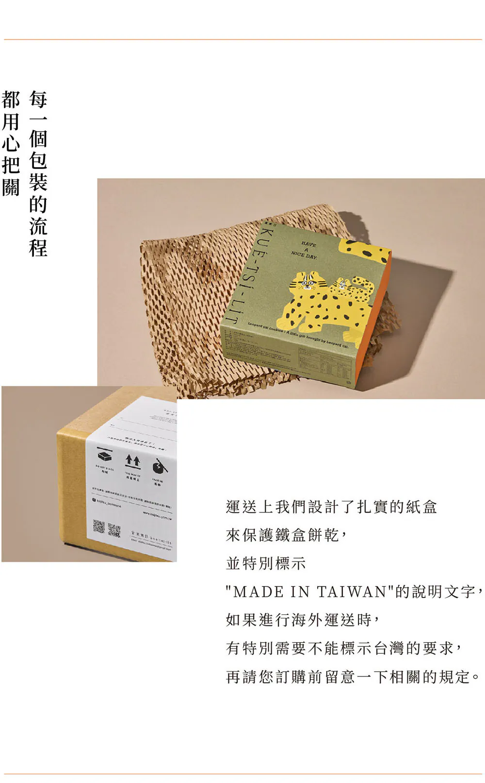 目前石虎鐵盒餅乾包裝已『無提供提繩式』包裝,為讓顧客方便送禮,會另附提袋。